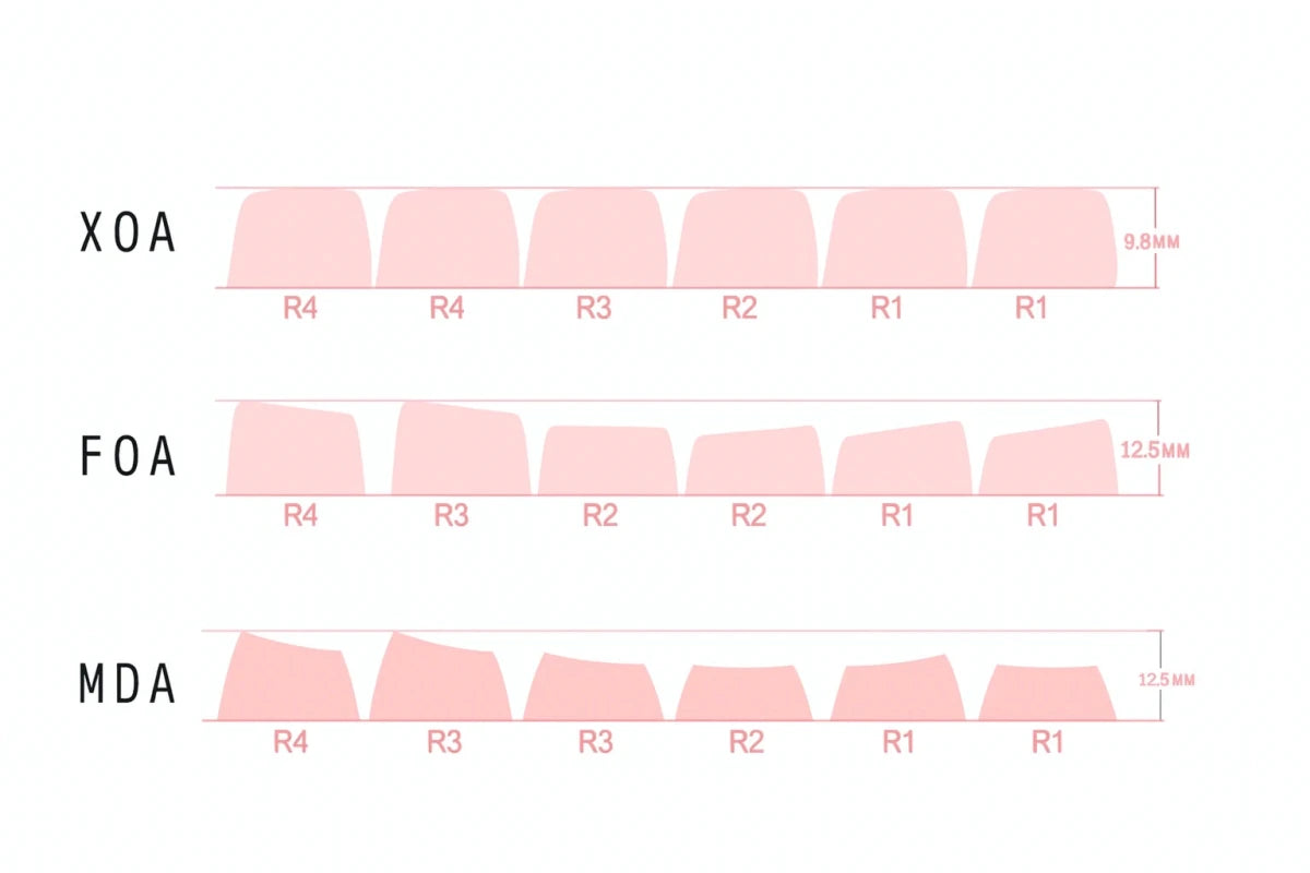 • Profiles: XOA, FOA & MDA for a comfortable, rounded typing experience