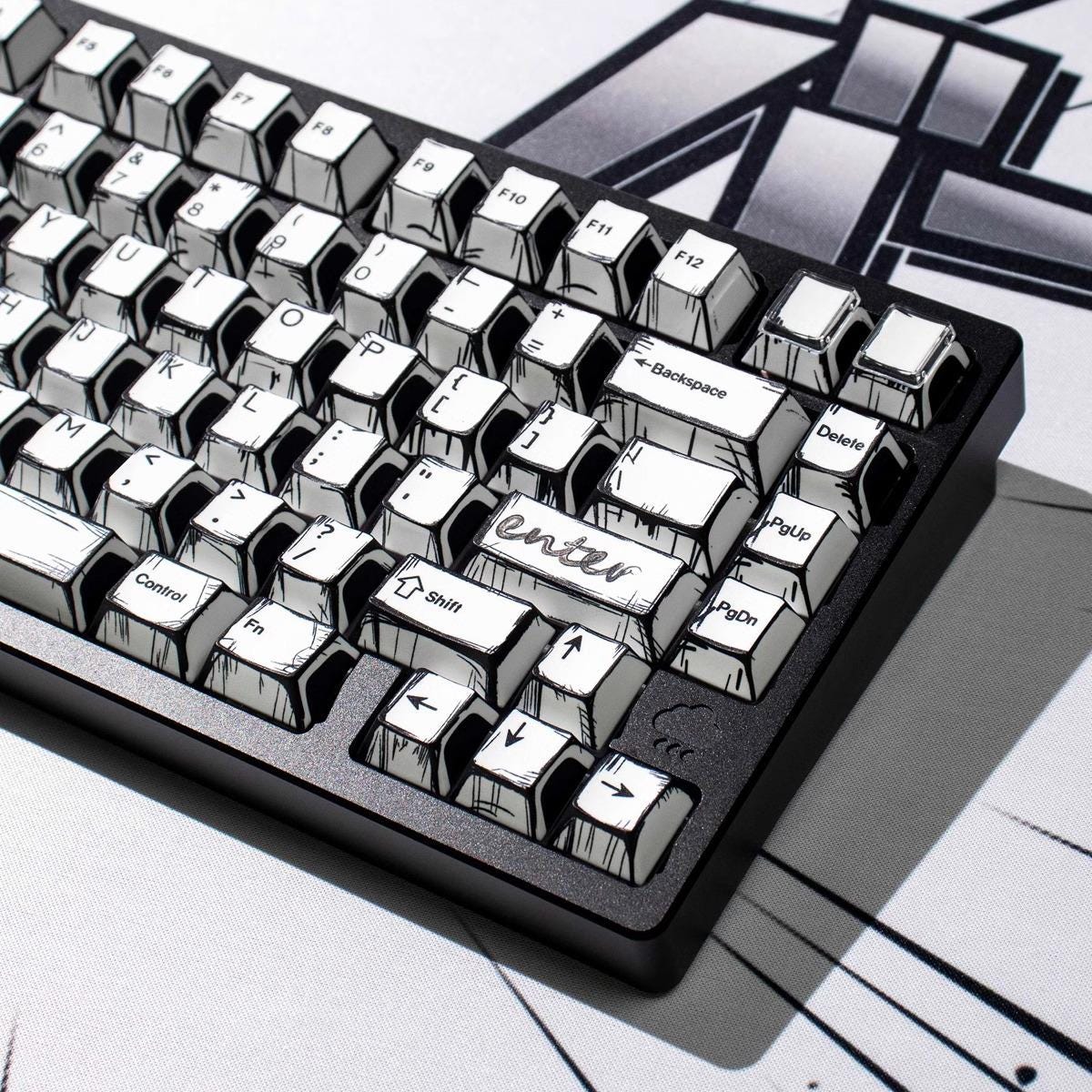 • Manga Graffiti Theme: This set features a mix of black and white graffiti-style manga art, transforming each key into a piece of street art with intricate, hand-drawn details. 🖋️🎨