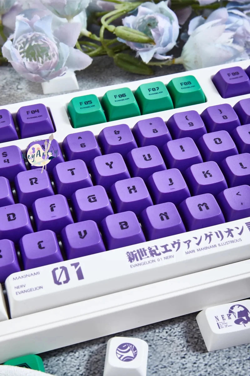 • Evangelion EVA-01 Theme: Inspired by the legendary EVA-01, this keycap set combines striking purple hues with Evangelion motifs for a bold and futuristic look. 🎨⚙️
