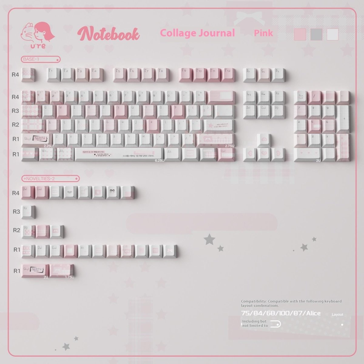 ✔ Compatible with 61 / 64 / 68 / 75 / 84 / 87 / 96 / 98 / 100 / 104 / 108-key layouts