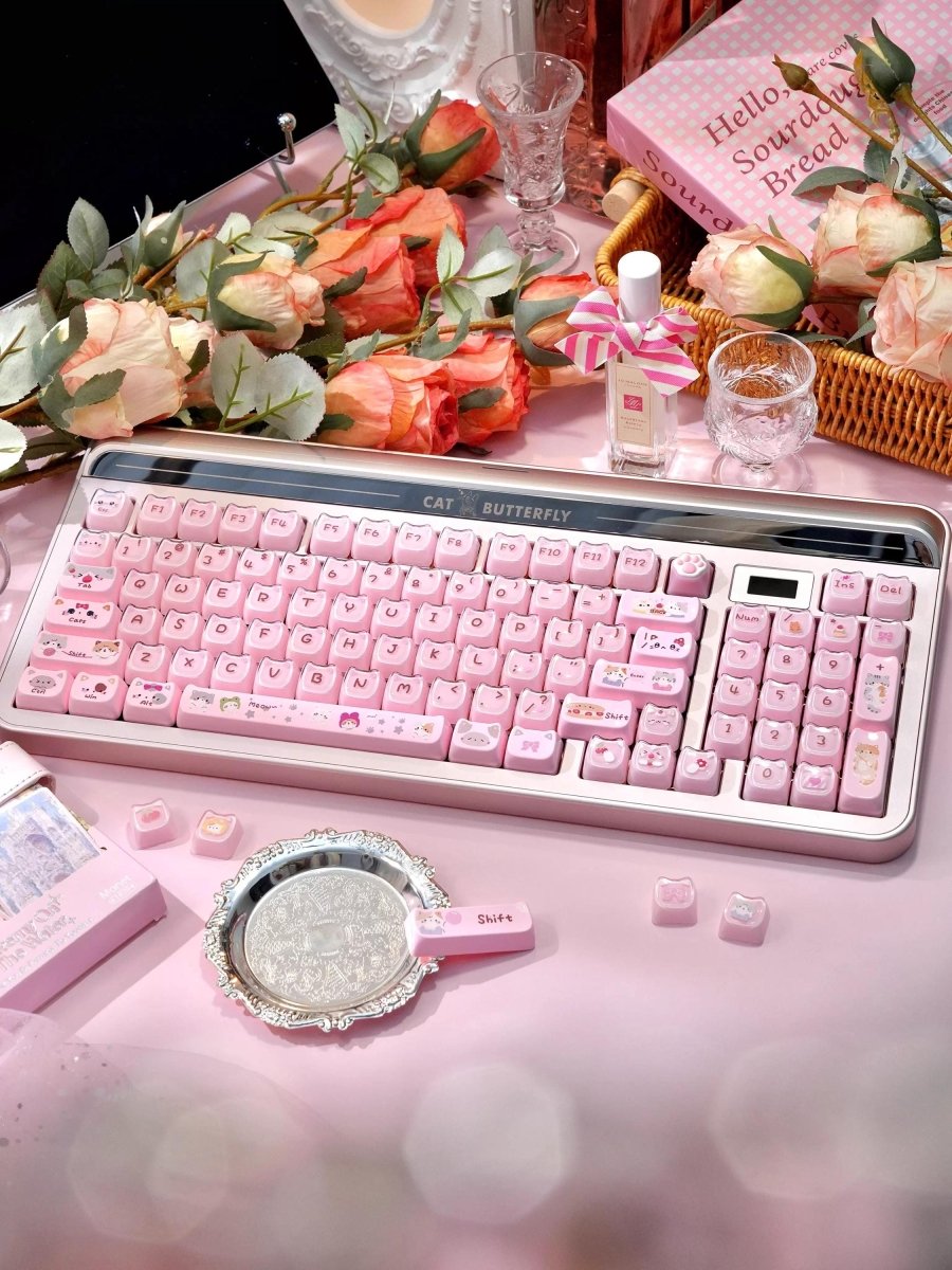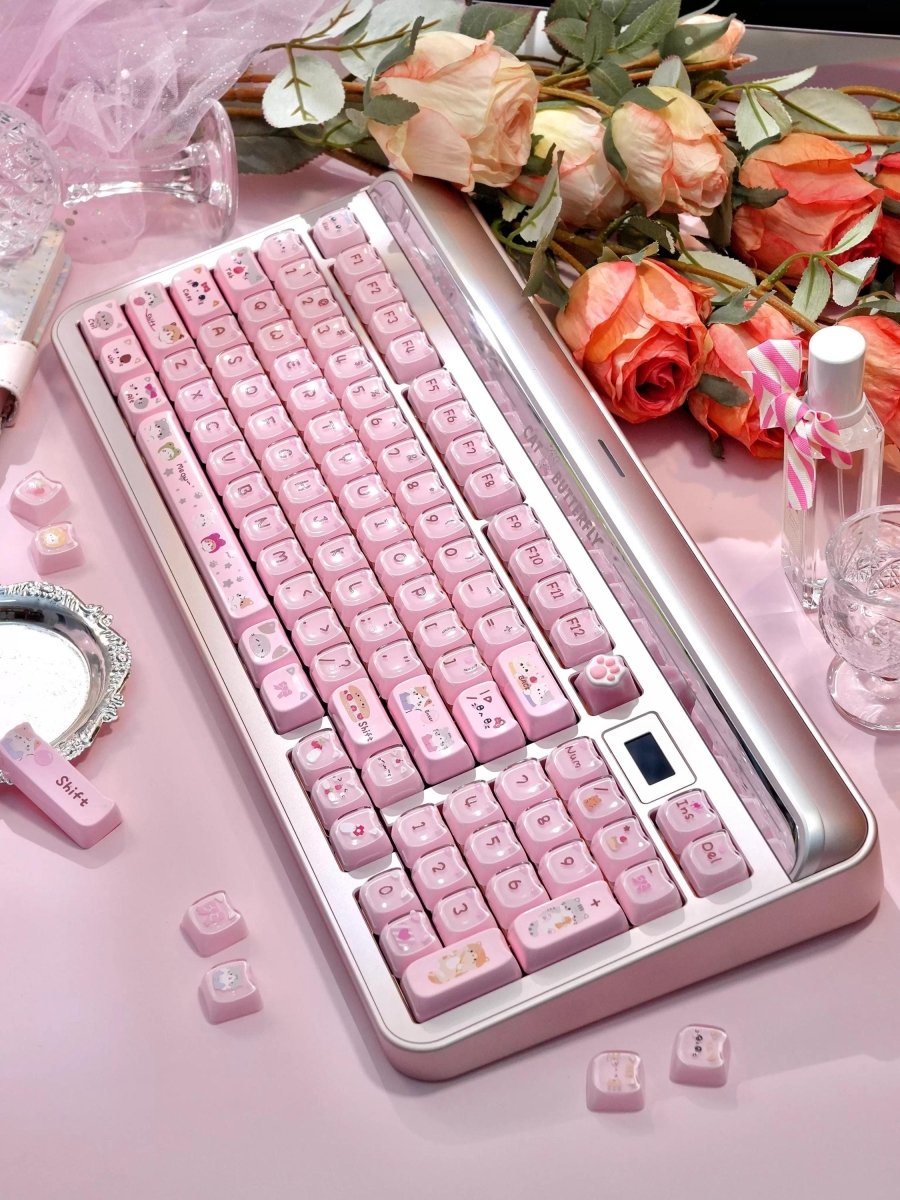 The Crystal Jelly Cat Kawaii Pink Keycap Set brings a dreamy kawaii aesthetic to your mechanical keyboard with adorable cat-shaped crystal style keycaps, soft pastel tones, and a unique double-layer design.