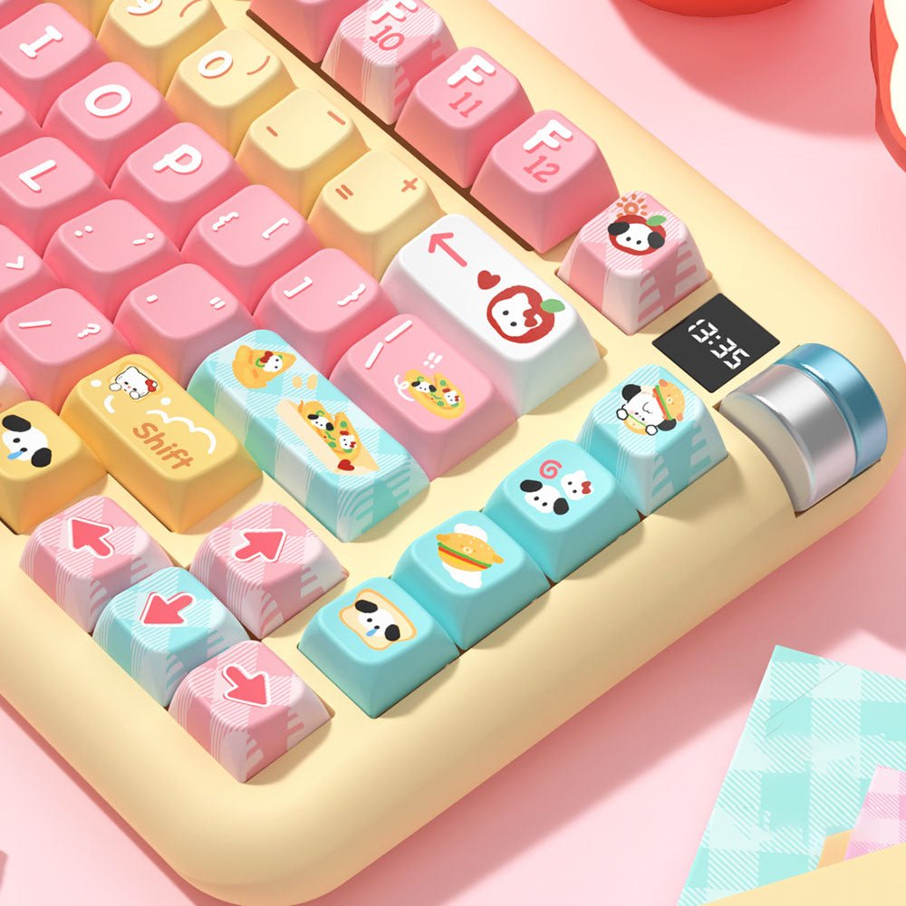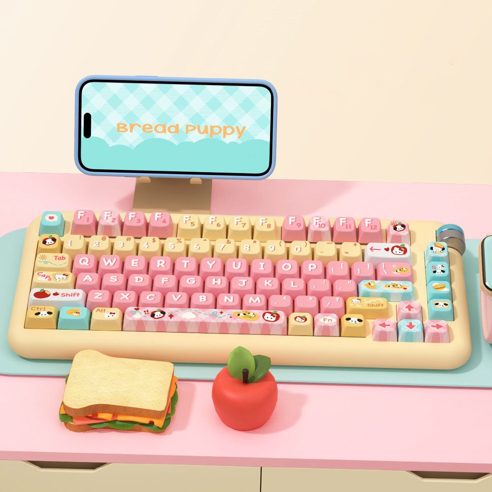 🍞 Food-Inspired Design – Toast-shaped keycaps with playful animal motifs.