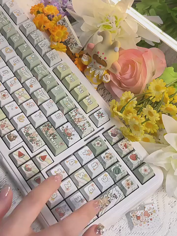 Add a fresh and charming aesthetic to your mechanical keyboard with the Cute Matcha Green Floral Theme Keycap Set! 🍃💚