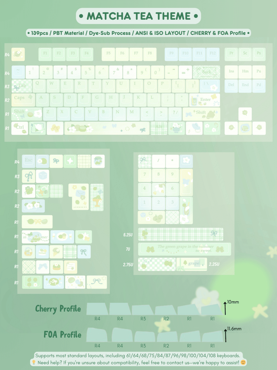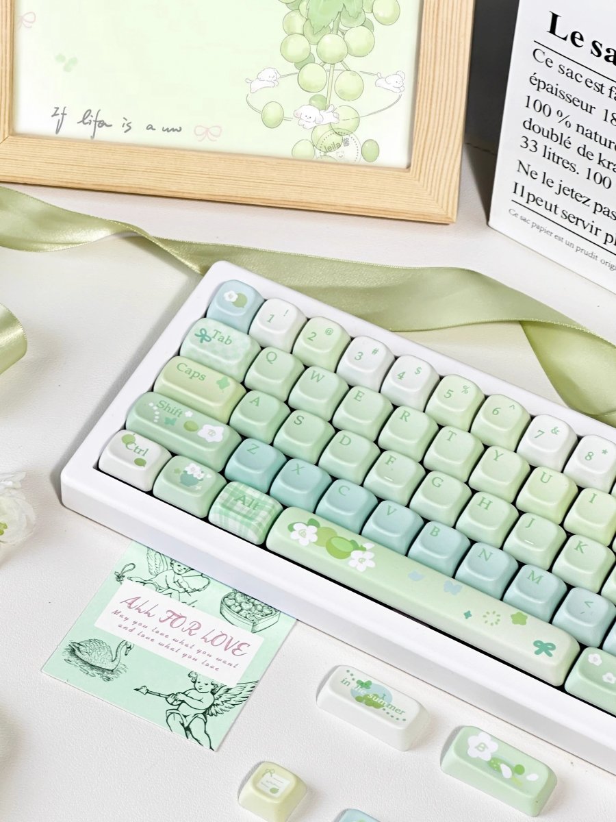 Are you a matcha lover looking to refresh your keyboard setup? This Cute Matcha Tea Theme Keycap Set brings a serene and cozy aesthetic with its green gradient design, inspired by the soothing tones of matcha tea. 🌿✨