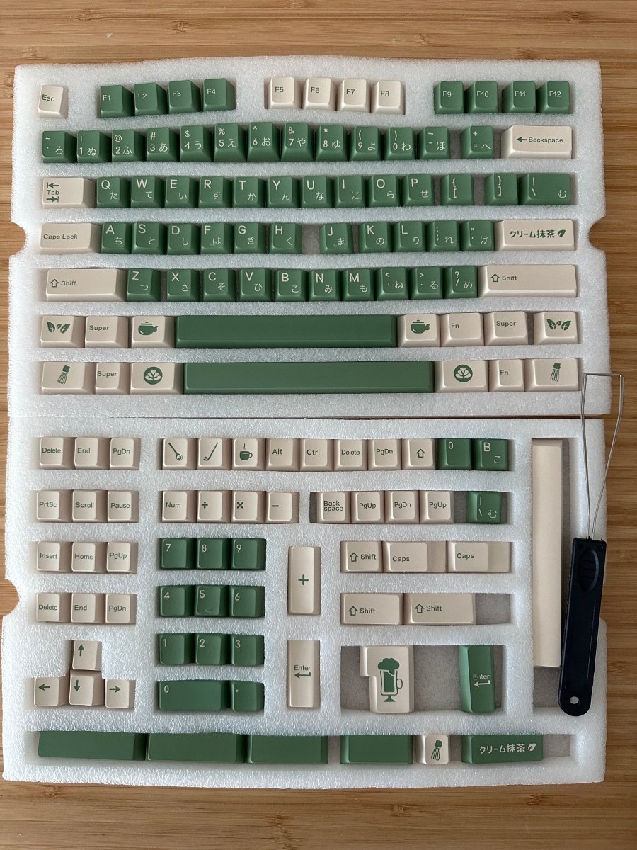Featuring a soft and soothing green tea-inspired color palette, this set is perfect for adding a refreshing and kawaii touch to your keyboard. Made from high-quality PBT material with a dye-sublimation process, the legends remain crisp and fade-resistant for long-lasting beauty. The Cherry profile offers a comfortable and ergonomic typing experience, making it ideal for both work and gaming.
