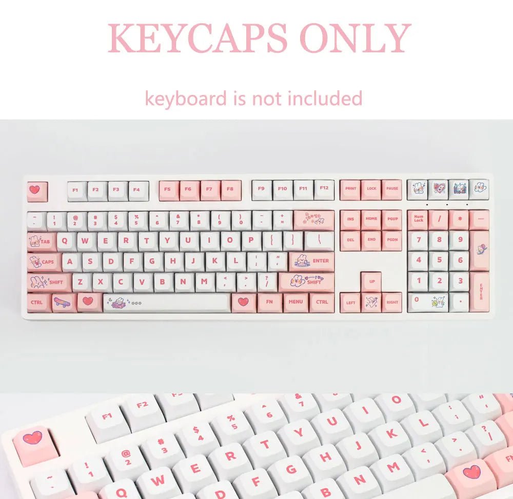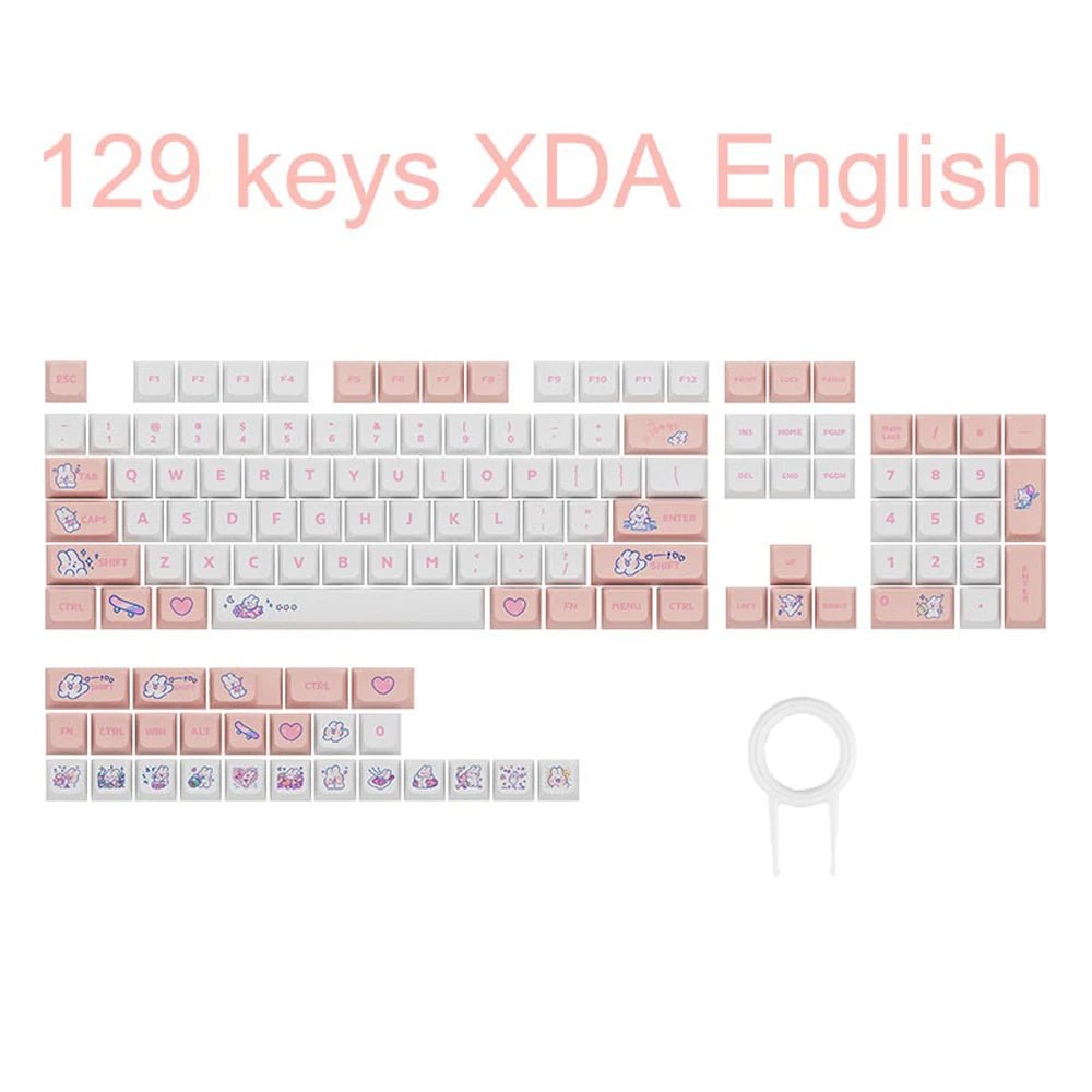 Add a whimsical touch to your mechanical keyboard with our 129-Key Cute Steam Rabbit Pink Keycap Set! Featuring a charming steam rabbit design in a soft pink hue, these XDA profile keycaps are crafted from durable PBT material with dye-sublimation printing to ensure vibrant, long-lasting colors. Ideal for MX switch keyboards, this set is perfect for those looking to bring a playful, unique aesthetic to their setup.