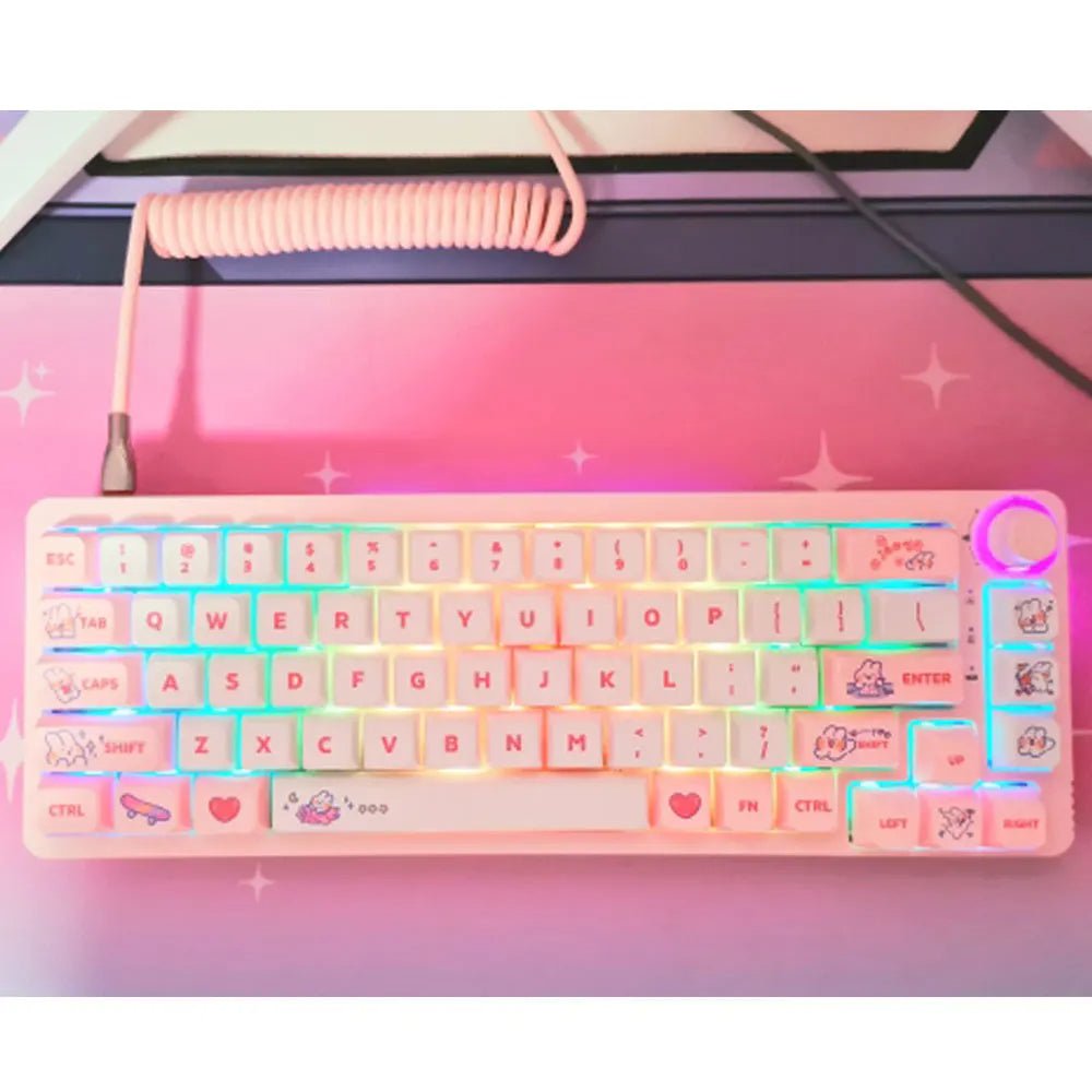 - Adorable Steam Rabbit Theme: The cute steam rabbit design in pastel pink adds personality and charm to any mechanical keyboard, perfect for fans of playful and unique designs.