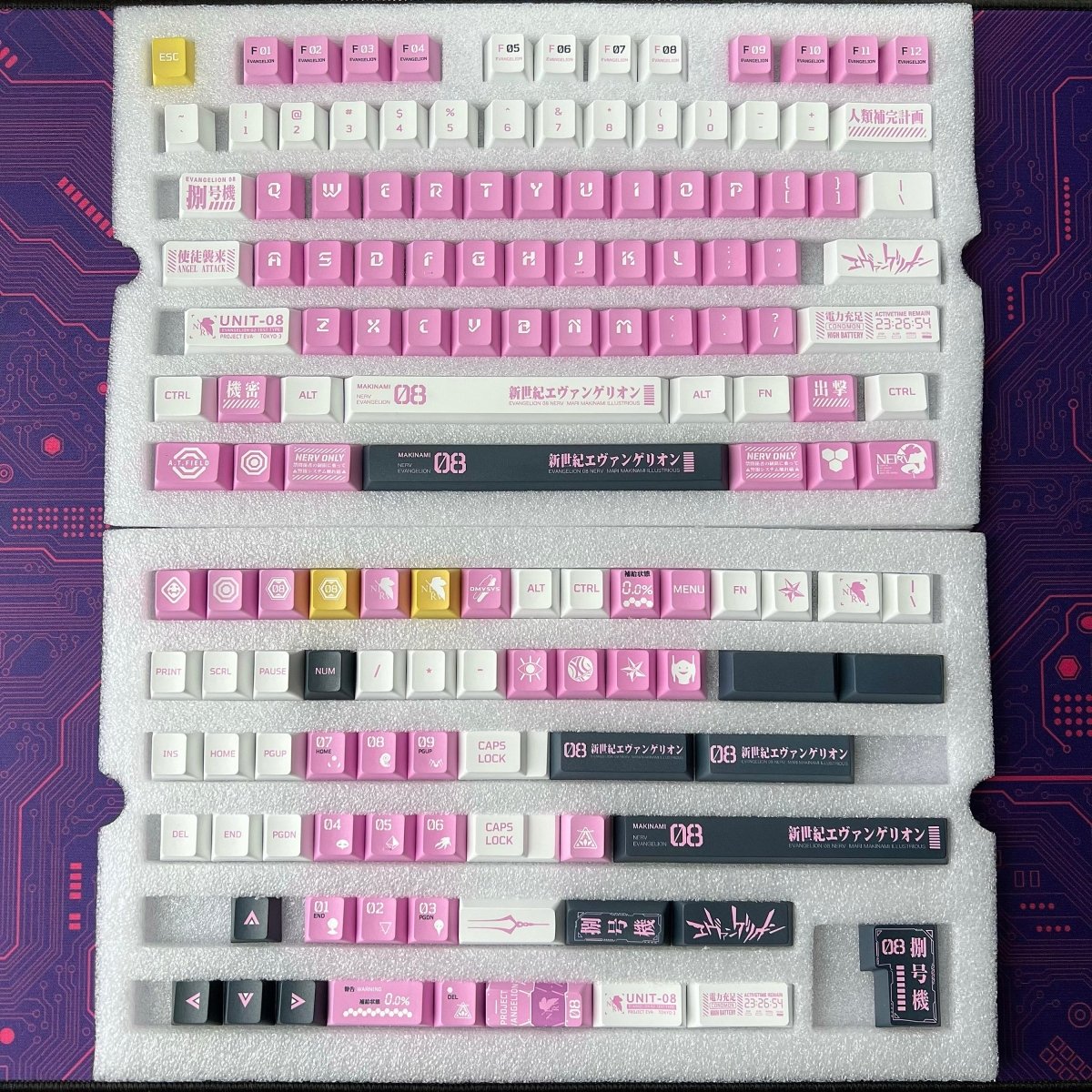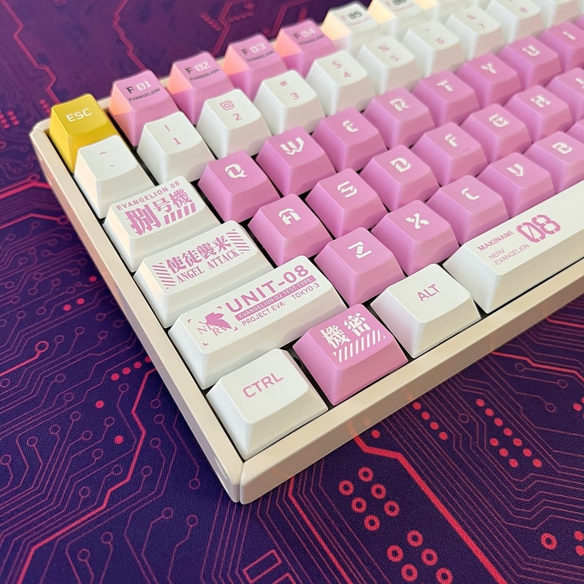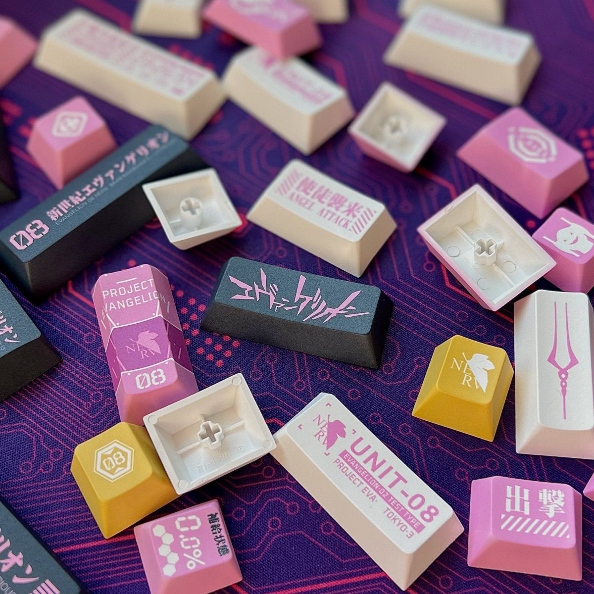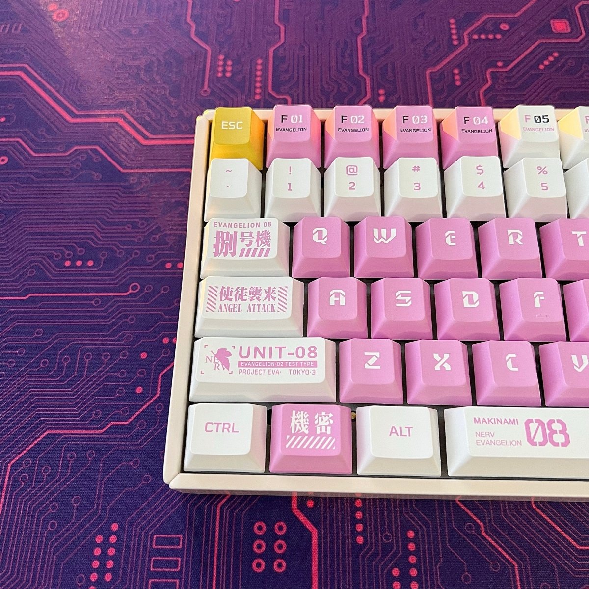Stunning Cute Pink Eva Unit-08 Keycap Set to elevate your setup! Its vivid details and vibrant colors will make your keyboard stand out. They fit perfectly on a variety of keyboards and give satisfying typing experience. Don’t miss out on these amazing keycaps!