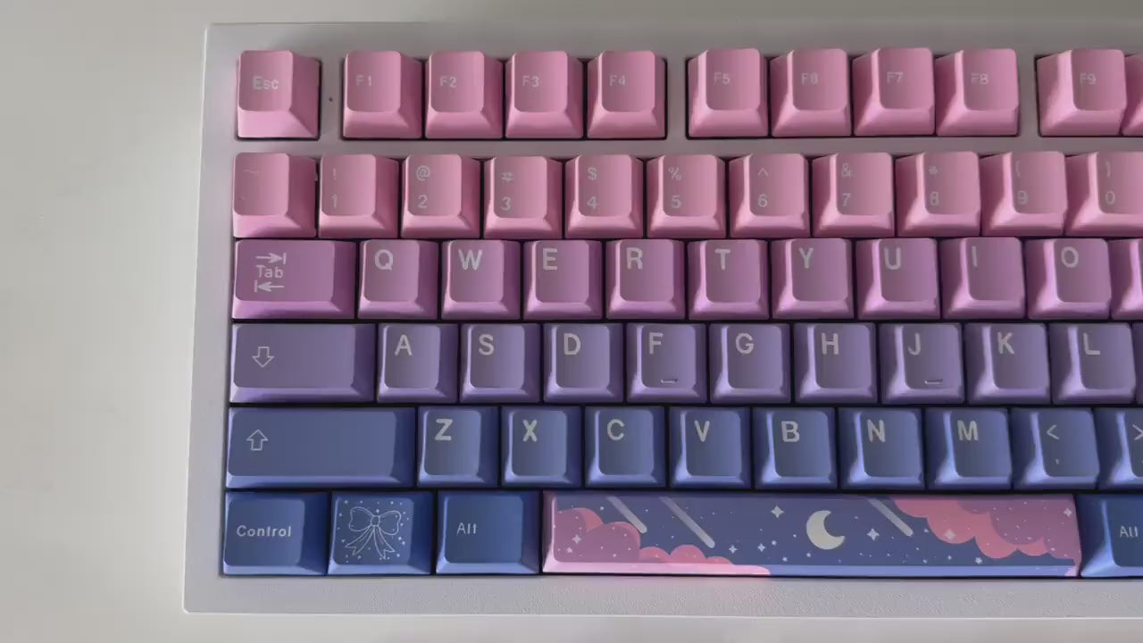Upgrade your mechanical keyboard with the enchanting Cute Pink Fairy Moon Theme Gradient Keycap Set! Designed for those who love a dreamy aesthetic, this set features a beautiful pink-to-purple gradient with fairy and moon-inspired legends. Crafted from durable PBT plastic with dye-sublimated printing, these keycaps ensure a premium feel and long-lasting beauty.
