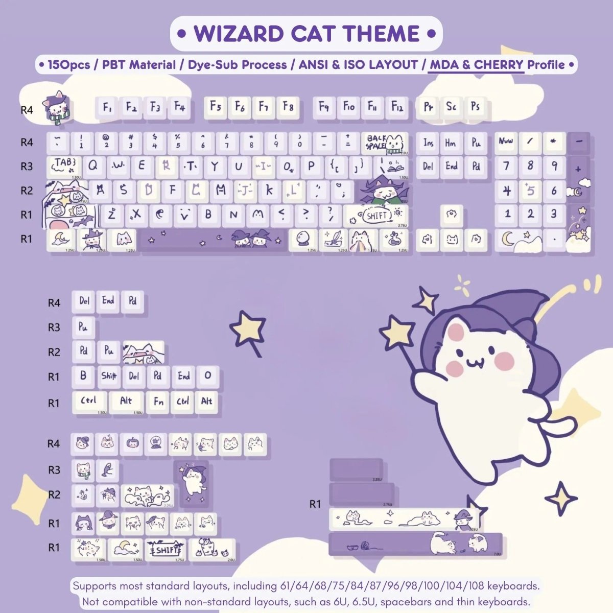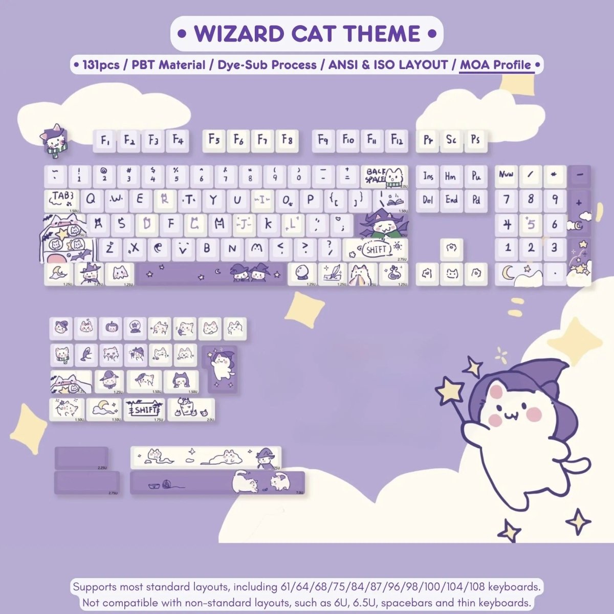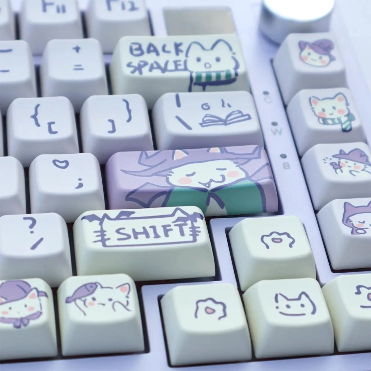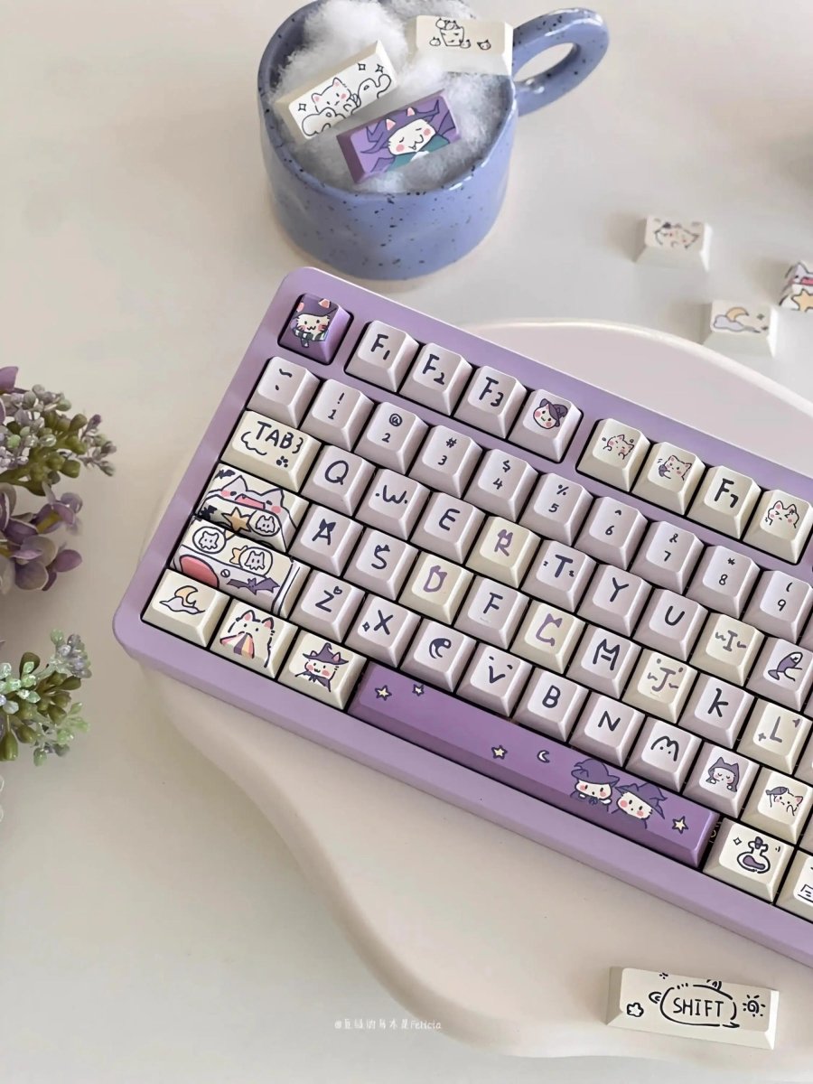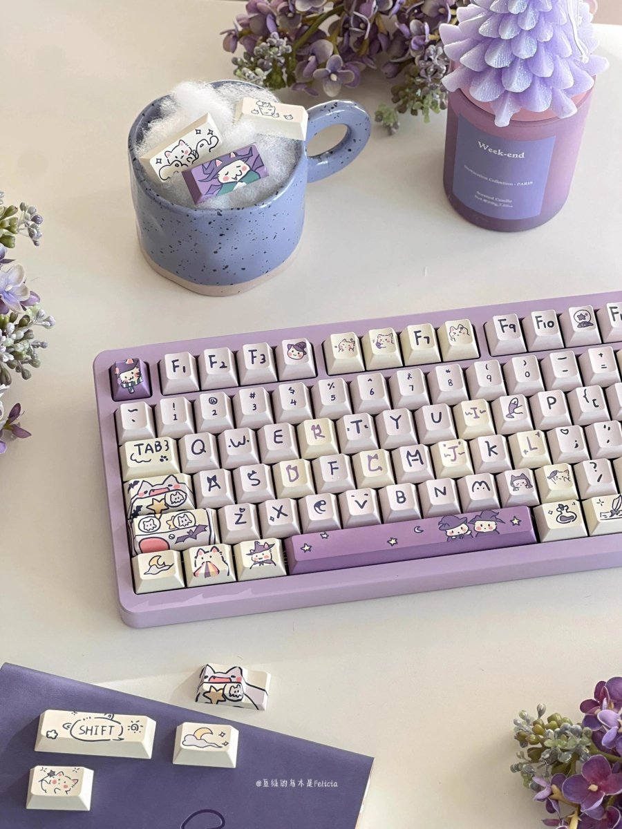 Looking to add a touch of magic to your keyboard? ✨🐱 The Cute Purple Wizard Magic Cat Theme Keycap Set brings an enchanting blend of kawaii aesthetics and mystical charm to your setup! Featuring adorable wizard cat designs in a dreamy purple color scheme, this keycap set is the perfect choice for those who love a whimsical, fantasy-inspired look. 🪄💜
