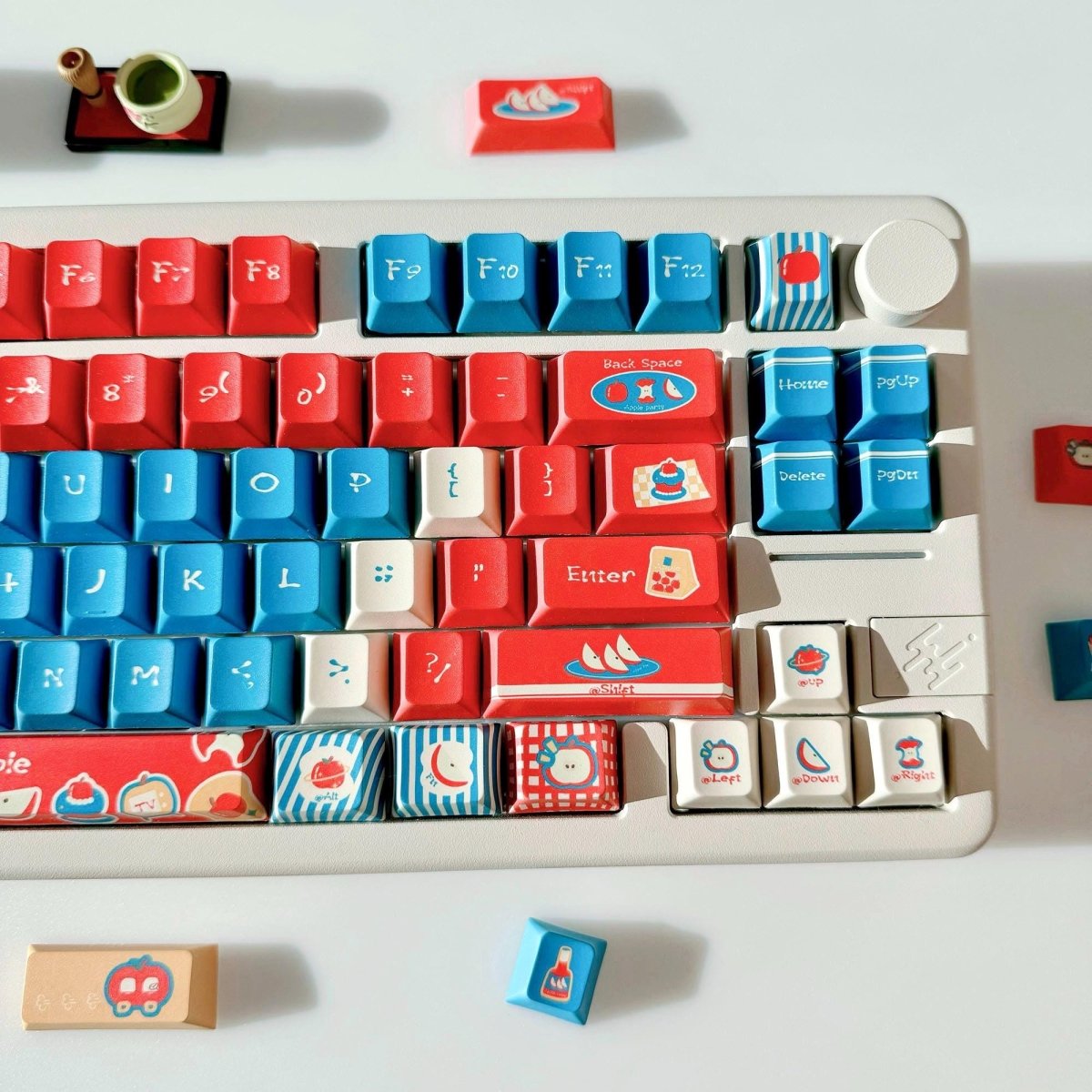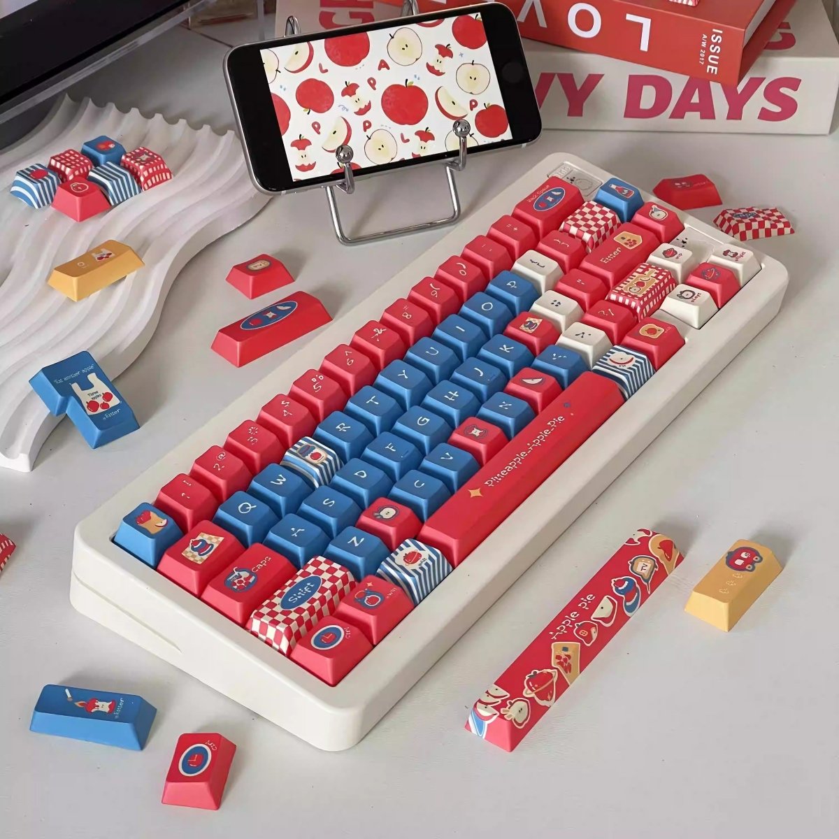 Red Apple Pie Theme Keycaps Set – where every keystroke is a slice of happiness! 🍏🍎 Immerse yourself in the rich hues of red and blue, reminiscent of a freshly baked apple pie. 🥧✨