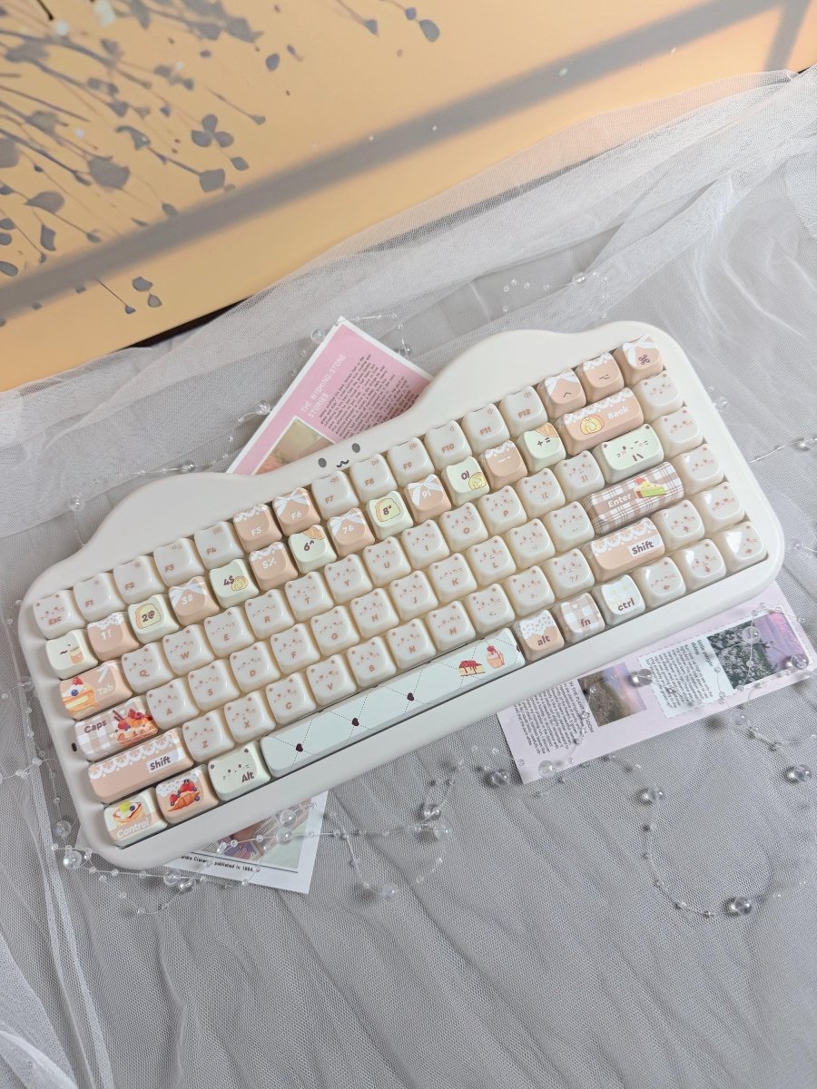 With creamy whites, soft blush tones, and subtle dessert accents, each key feels like a tiny scene from a pastel bakery diary — soothing, playful, and easy on the eyes. Perfect for cozy, kawaii, and minimal desk setups.