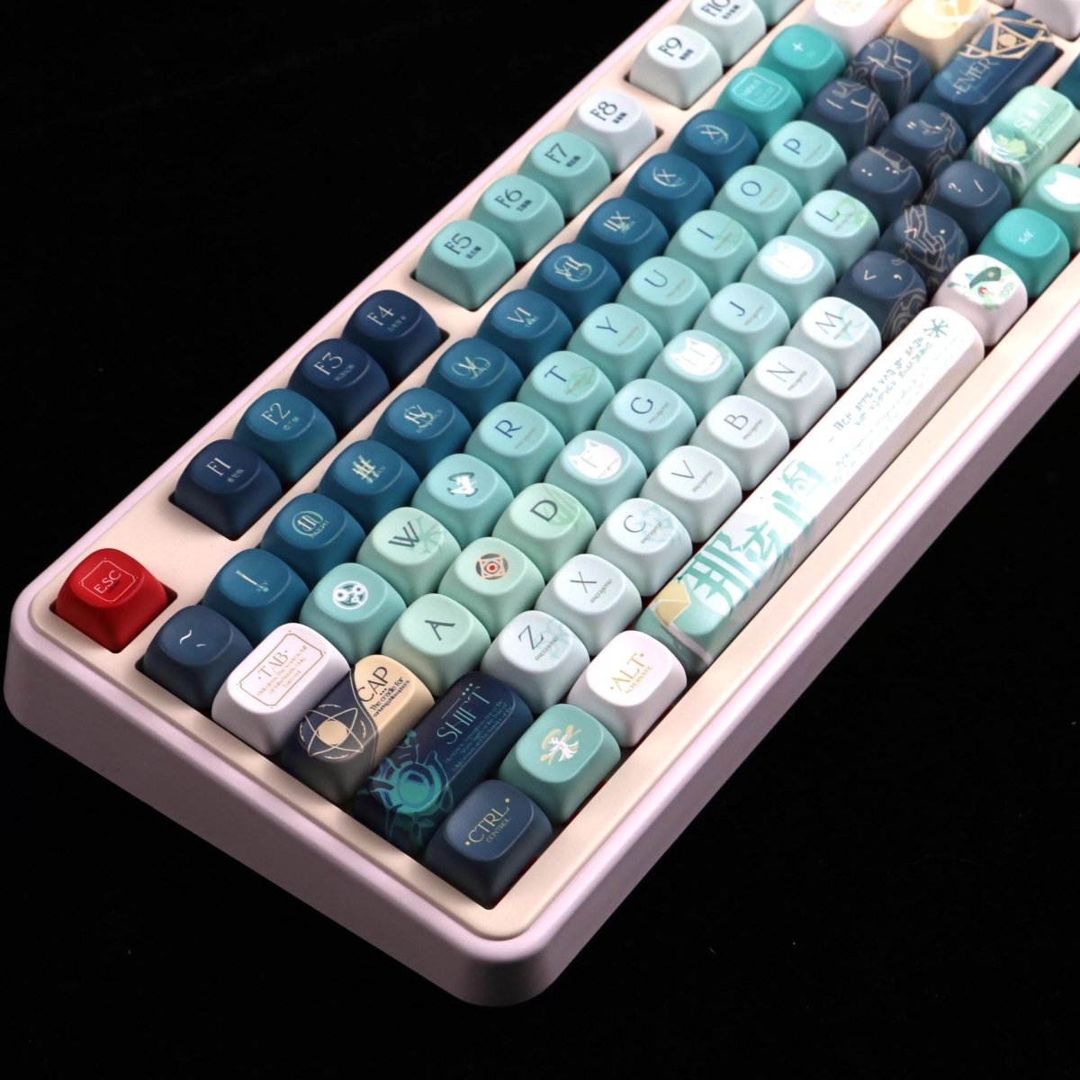 Featuring space-inspired designs with dreamlike visuals, vivid 5-sided dye-sublimation printing, and premium PBT construction. The ethereal color palette of cosmic blues, soft purples, and pastel tones creates an immersive celestial aesthetic that Honkai: Star Rail fans and keyboard enthusiasts will adore.