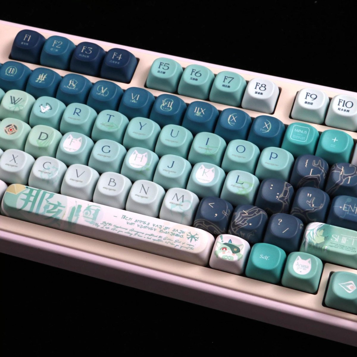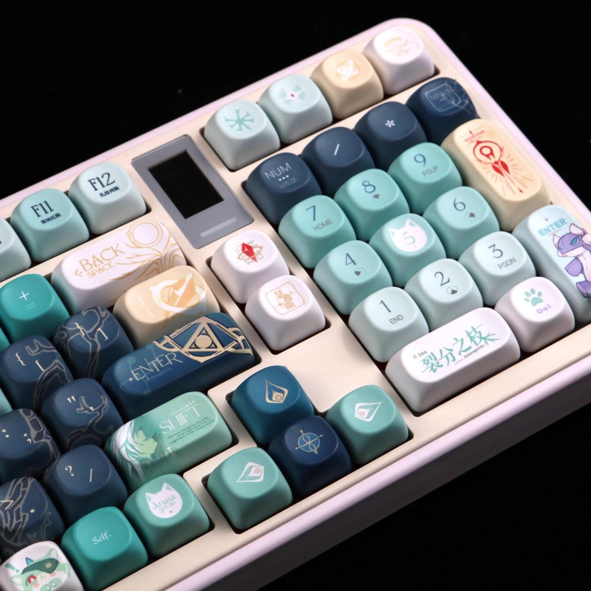 The Honkai Star Rail Anaxagoras Theme Keycap Set blends soft pastels with starbound aesthetics, bringing the beloved game to life on your keyboard. Every keystroke becomes a journey through the cosmos.