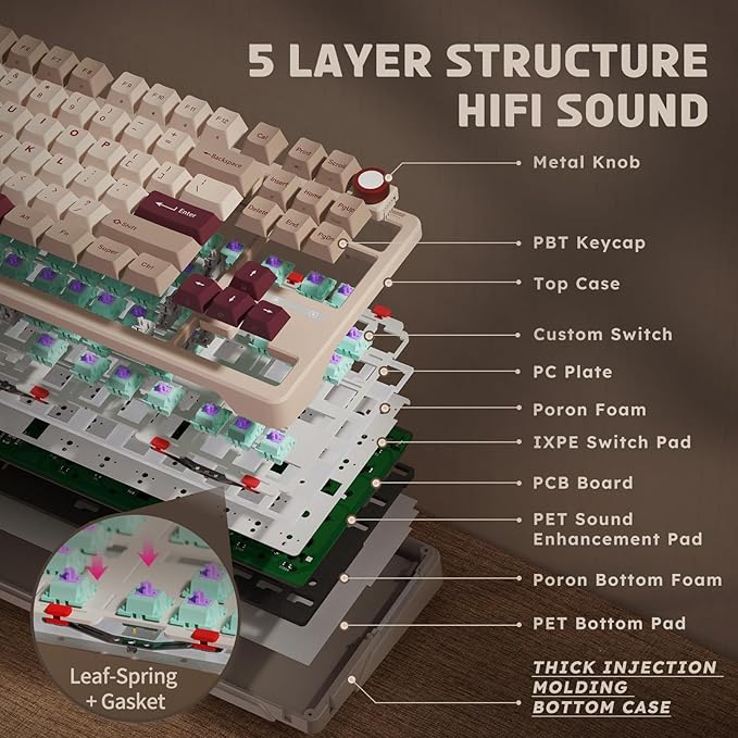 This combination produces a clean, HiFi-style keystroke sound while improving typing consistency.
