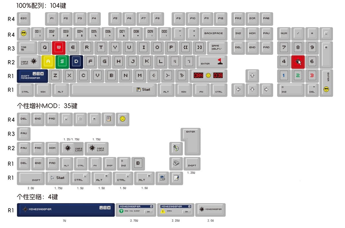 This Minesweeper – Themed keycap set is inspired by the classic game, perfectly blending fun and functionality. Each keycap is made of high-quality PBT material, making it durable and oil-resistant, with a comfortable feel. The vibrant colors showcase iconic elements from the game, providing visual impact while igniting players’ enthusiasm. Compatible with various mechanical keyboards and easy to install, it’s the perfect choice for every gaming enthusiast and Minesweeper fan. Revitalize your keyboard and enjoy the joy at your fingertips!