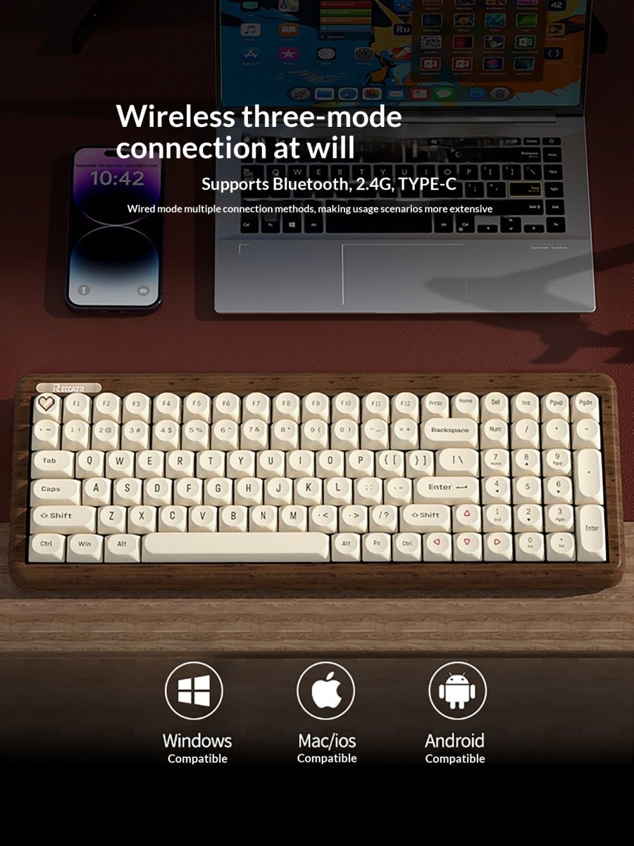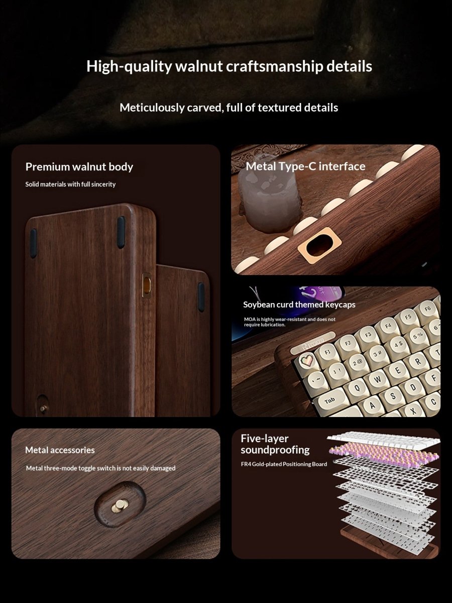 CNC-Carved Natural Wood • Triple-Mode Wireless • Hot-Swappable