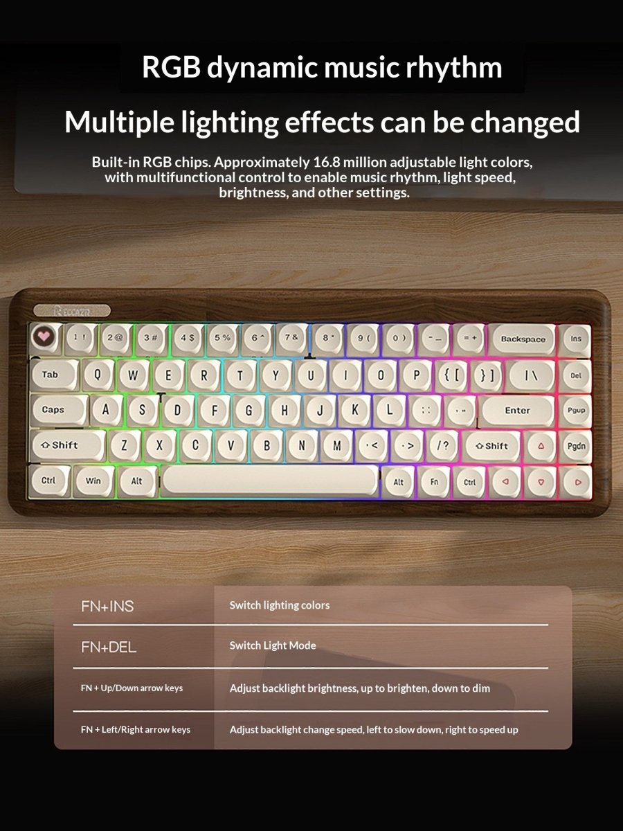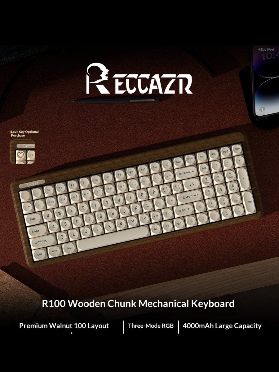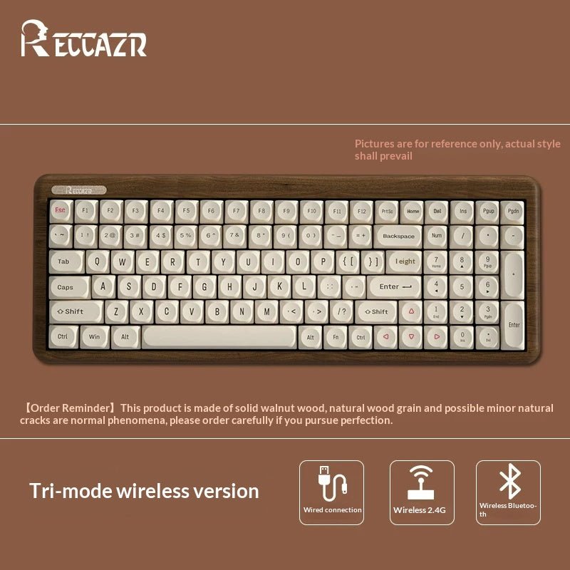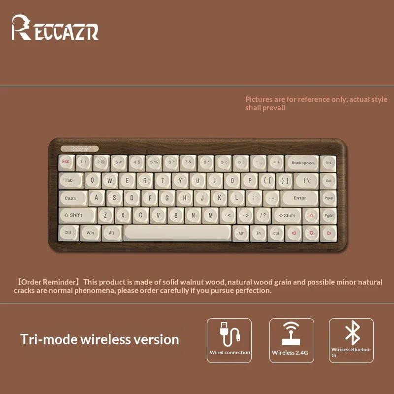 Designed for those who appreciate craftsmanship as much as performance, the Reccazr walnut mechanical keyboard blends solid natural wood construction with modern mechanical keyboard engineering. Each unit is precisely carved from whole solid walnut wood using CNC machining, preserving the authentic grain, texture, and character of real wood.