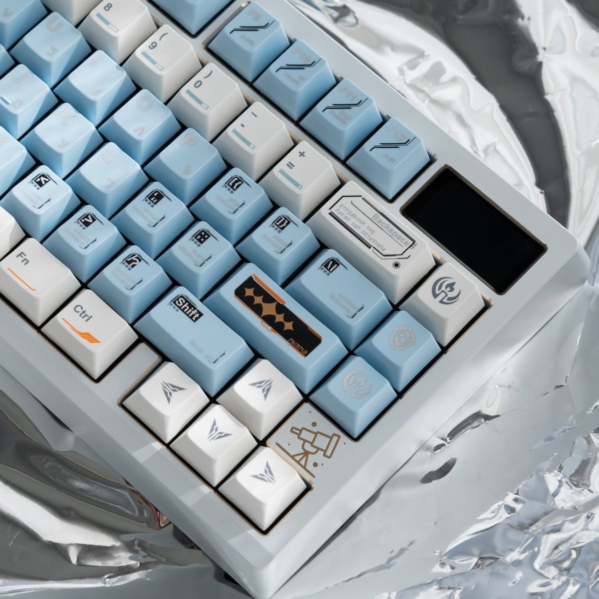 Featuring a clean cosmic design with silver legends and a soothing blue-and-white palette, this set captures the spirit of discovery and exploration beyond Earth’s atmosphere. Made from high-quality PBT with Dye-Sub printing, every keystroke feels like you’re piloting your own spacecraft.