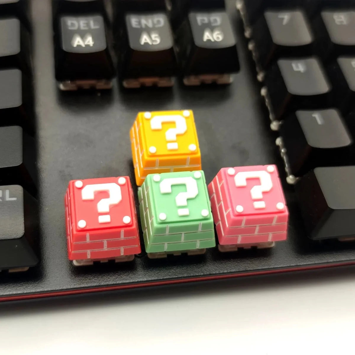 Choose from four vibrant colors — red, yellow, light green, and pink — each featuring the classic question mark design that fans instantly recognize. Whether you’re a gamer, collector, or casual fan, this keycap brings the magic of the Mushroom Kingdom right to your fingertips.