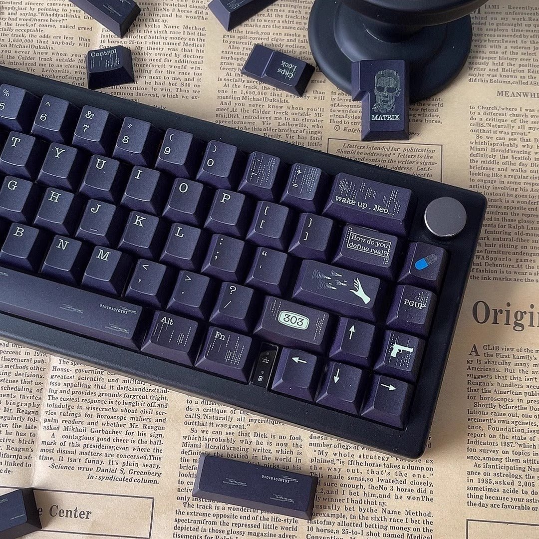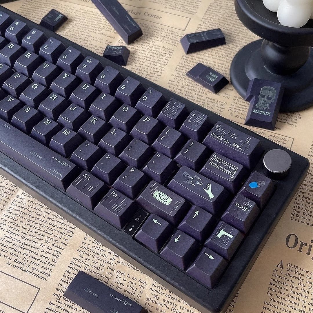 Explore the Matrix-themed keycaps, which transport you to a world rich with sci-fi and philosophical contemplation. Inspired by the film “The Matrix,” these keycaps reflect a virtual realm where human life appears normal but is merely an illusion created by machines.