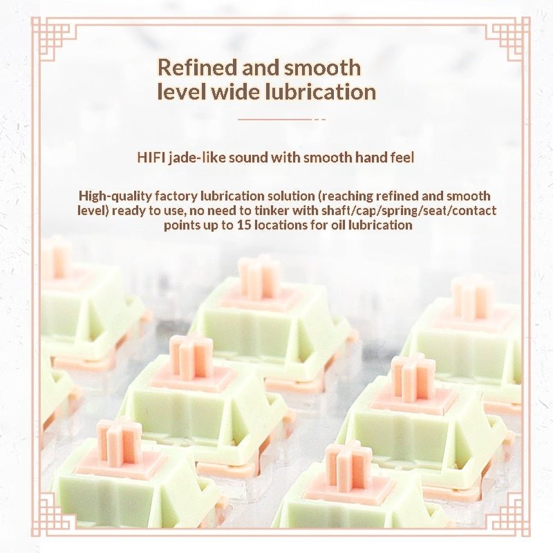 Each switch is professionally factory-lubed across up to 15 key contact points, including the stem, spring, and housing. This reduces friction, helps minimize spring noise, and ensures a refined, premium feel with no additional tuning required.